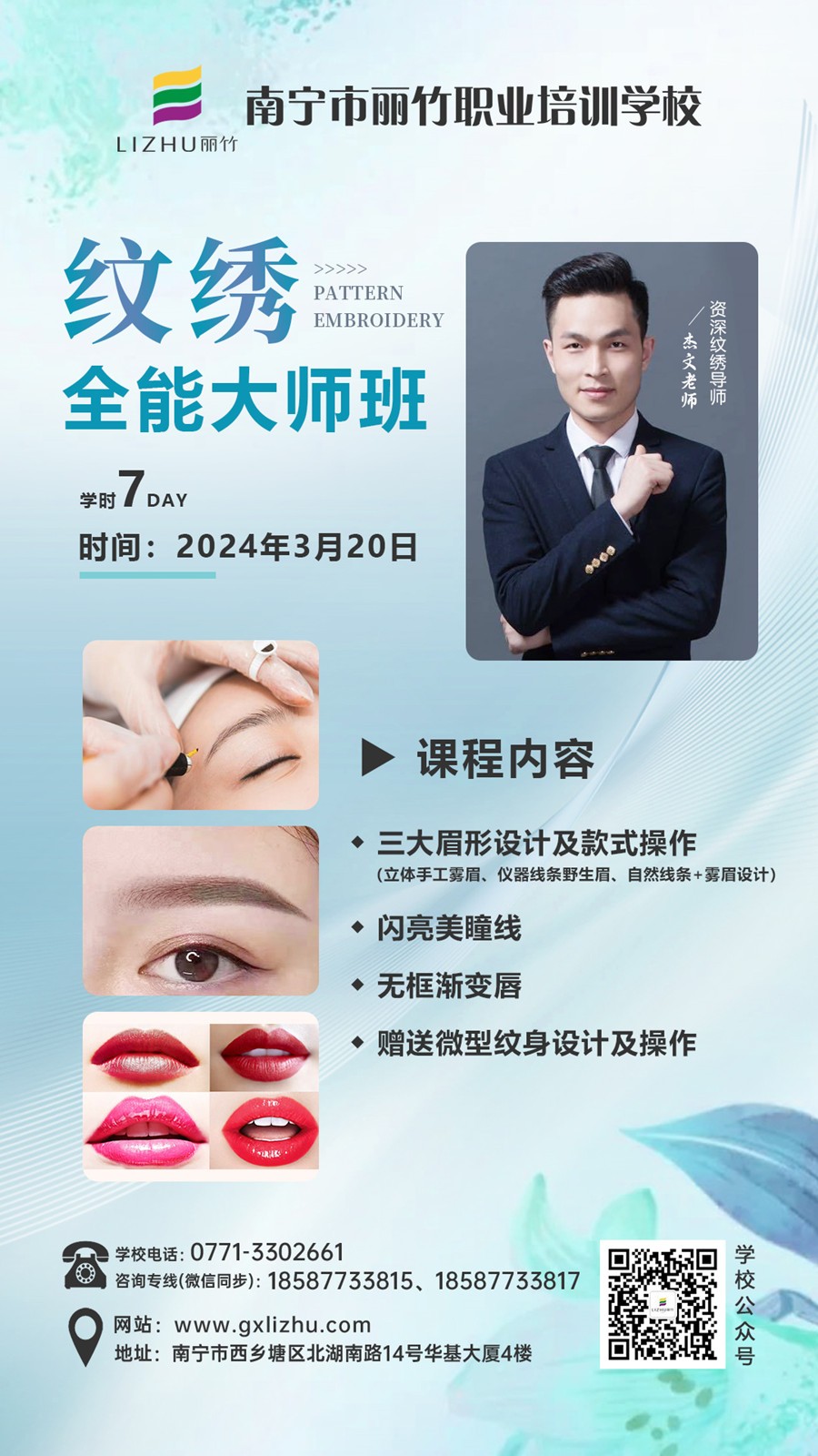 廣西紋繡、廣西紋繡進修:廣西南寧紋繡職業(yè)學(xué)校將在3月20日進行廣西眉眼唇培訓(xùn)班(麗竹紋繡大師班)培訓(xùn)課程。行業(yè)紋繡導(dǎo)師(杰文老師)手把手,一對一全程指導(dǎo),學(xué)習(xí)席位備受歡迎,如果不想錯過此次課程,趕緊聯(lián)系我們報名吧!