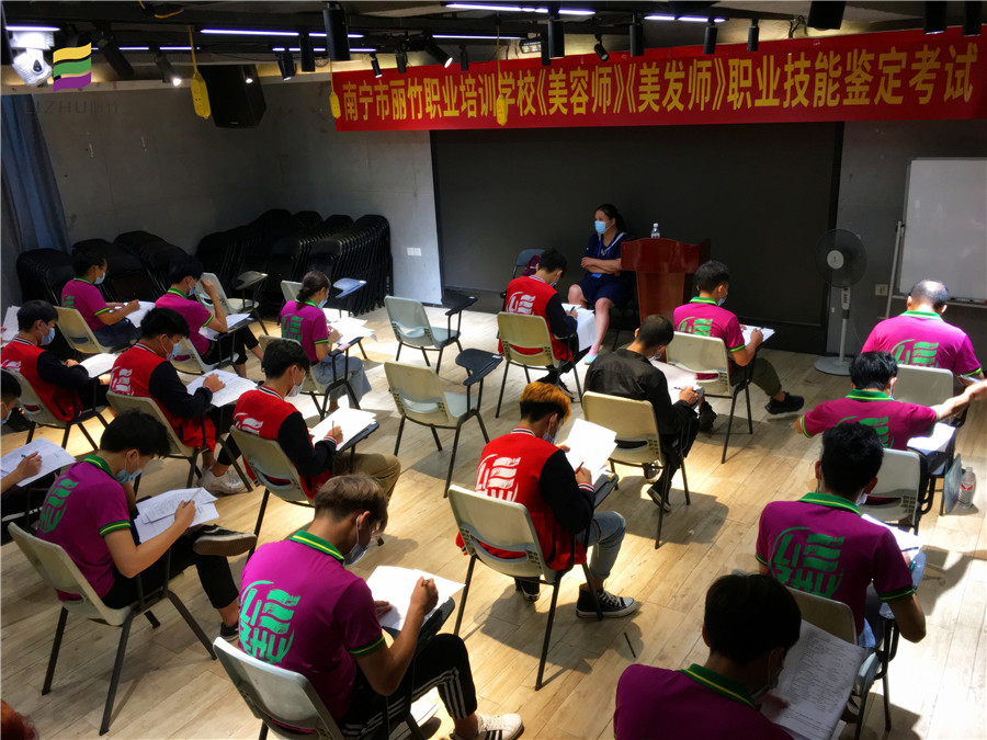南寧美容美發(fā)學(xué)校:麗竹學(xué)校作為南寧市職業(yè)技能定點培訓(xùn)機(jī)構(gòu),于7月26日在本校進(jìn)行了“南寧市麗竹職業(yè)培訓(xùn)學(xué)?!睹廊輲煛贰睹腊l(fā)師》職業(yè)技能鑒定”考試。