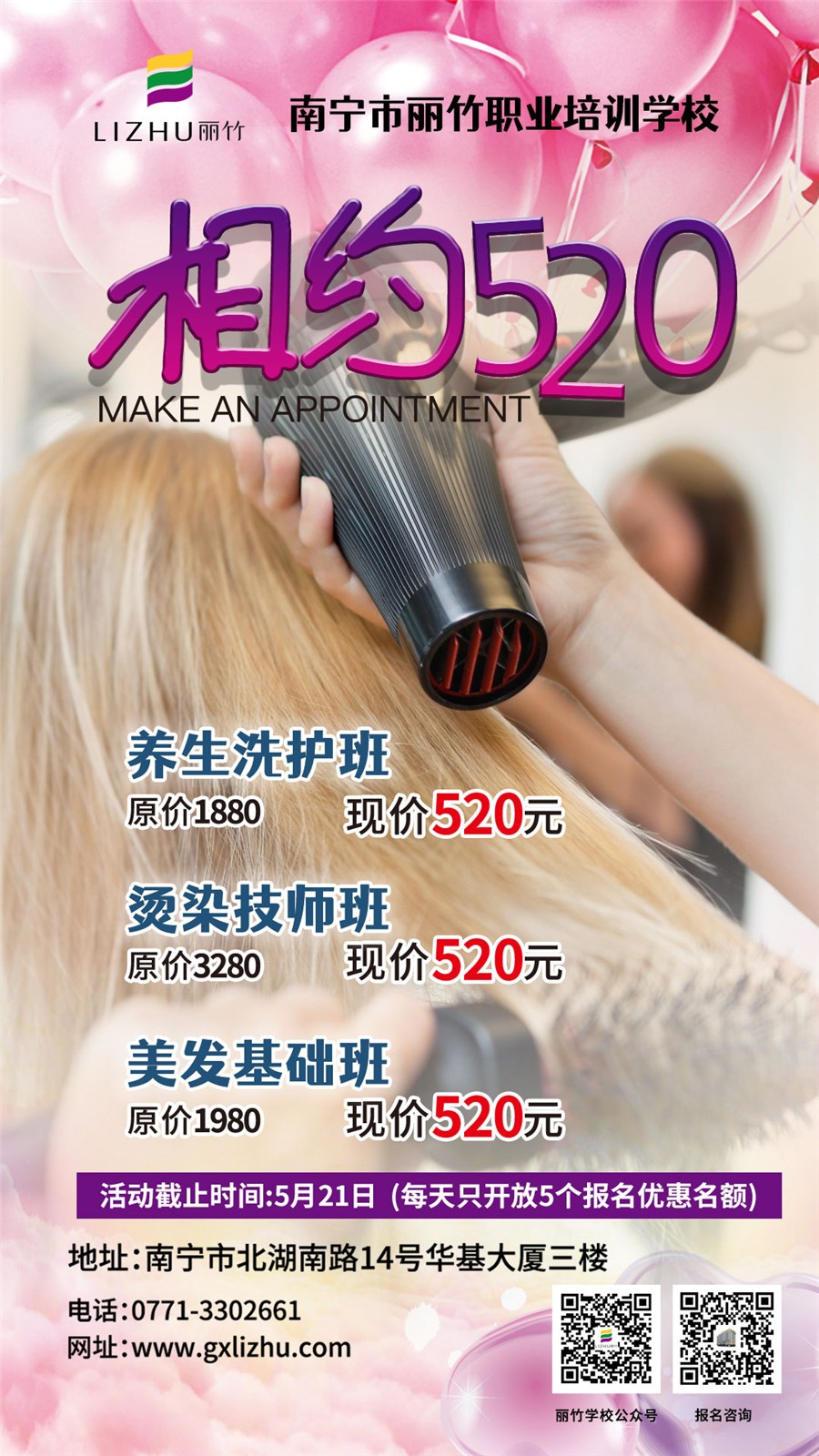麗竹學(xué)?!?20告白季”重磅推出5大“美麗護(hù)膚系列”課程,原價(jià)值3160元的培訓(xùn)項(xiàng)目,轉(zhuǎn)發(fā)朋友圈點(diǎn)贊集50個(gè) + 截圖保存,只需520+1元,即可從5門課程選2門學(xué)習(xí)?;顒?dòng)時(shí)間為:5月20日當(dāng)天報(bào)名的29個(gè)名額