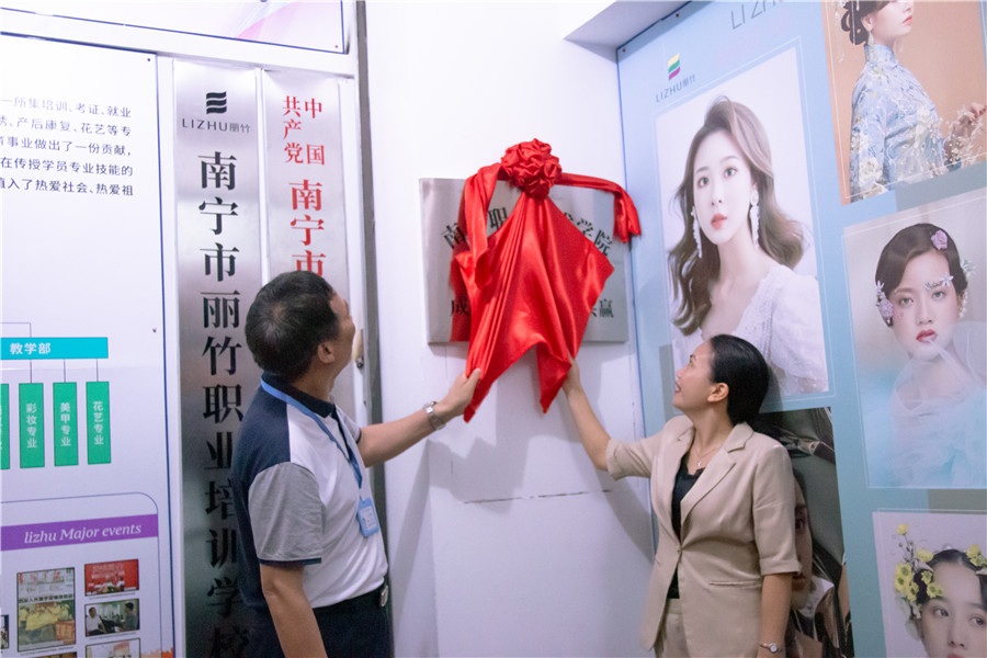 參加本次簽約揭牌儀式的嘉賓有:南寧麗竹職業(yè)培訓學校黨支部書記,校長王良友、南寧職業(yè)技術學院---共贏教學點校長徐穆英、南寧麗竹職業(yè)培訓學校副校長歐榮蘭、南寧麗竹職業(yè)培訓學校招生就業(yè)部主任潘偉平、南寧麗竹職業(yè)培訓學校教學部主任劉治才、南寧職業(yè)技術學院---市場招生辦教務監(jiān)督主任李容、南寧麗竹職業(yè)培訓學?;瘖y總監(jiān)玉可寧、南寧麗竹職業(yè)培訓學校美發(fā)組組長王姚芳、南寧麗竹職業(yè)培訓學校美容組組長韋紅蘭以及麗竹學校美容,美發(fā),美甲,化妝組老師。