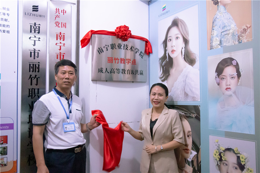 緊接著,在全體師生的共同見證下,王良友校長和徐穆英校長為南寧職業(yè)技術學院成人高等教育&共贏麗竹教學點揭牌,現(xiàn)場氣氛高漲,再次響起了熱烈的掌聲和喝彩聲。