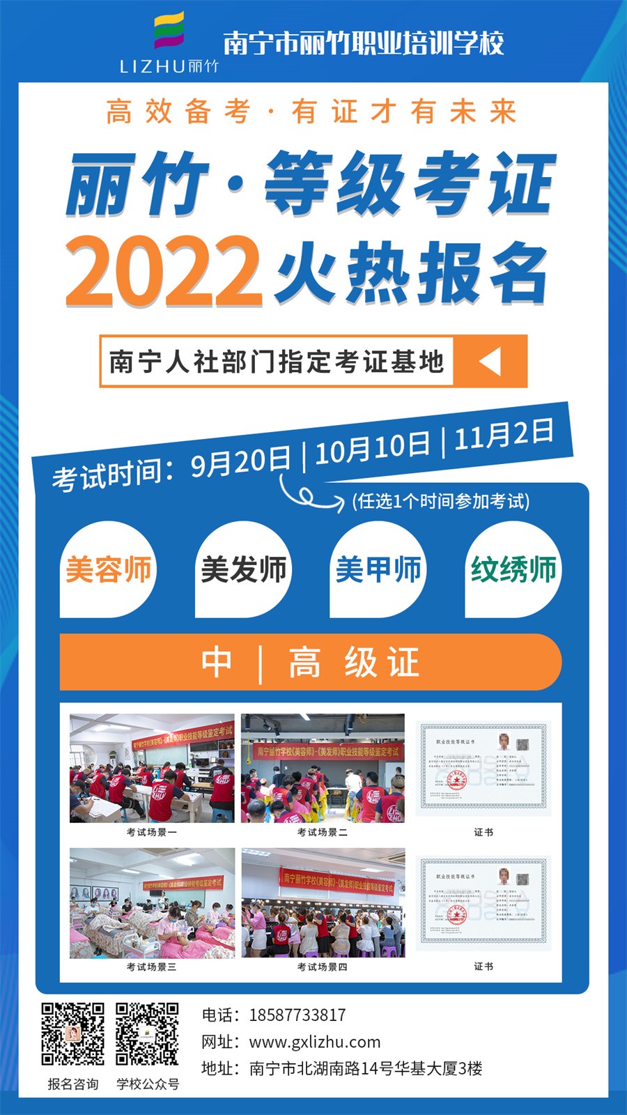 美容師、美發(fā)師、美甲師、紋繡師職業(yè)資格證--->麗竹學(xué)??甲C班